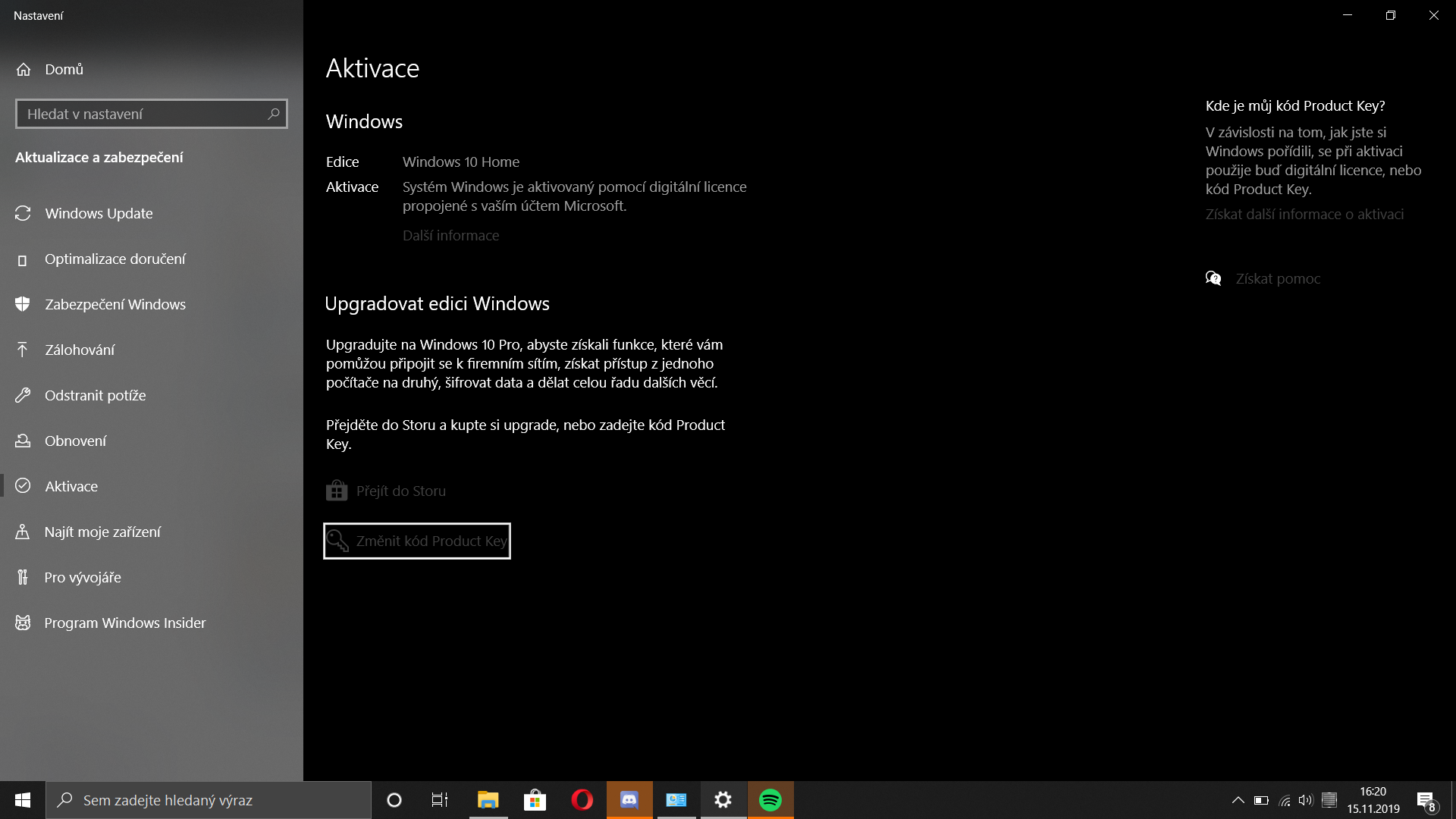Ahoj tam jak je napravo (kde je můj product key tak klikni na získat další informace o aktivaci a tam by ti to mělo už pomoc samo. Přeji hezký den