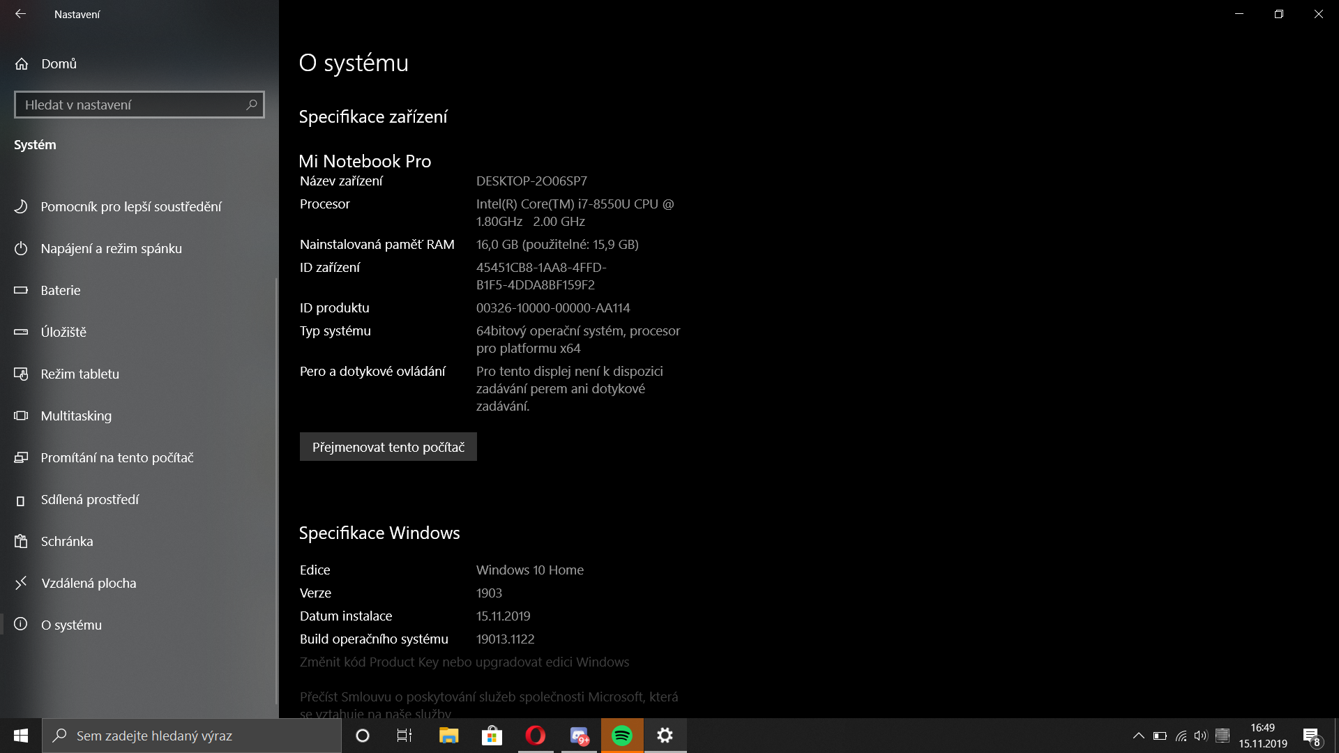 Snad stačí takto :) Jinak je to xiaomi mi book pro (i7, 16 GB RAM, MX150) Za legálnost windows ručím, stejně tak za legálnost veškerých programů na PC.