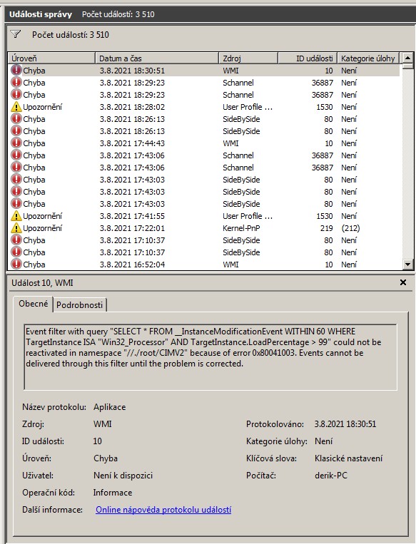 Ještě mě irituje proč mám v prohlížeči událostí tolik chyb ?