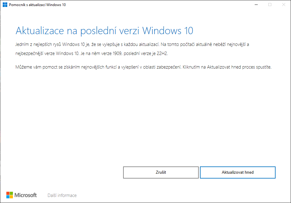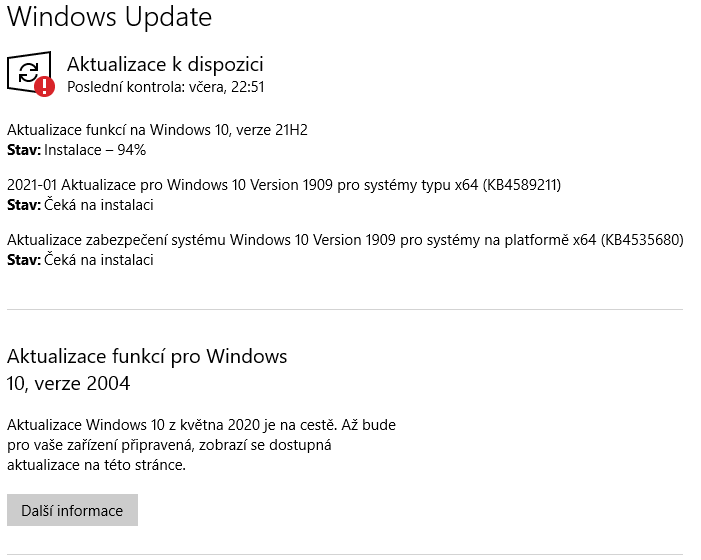 Tak zatím bez úspěchu. Ani 22H2, zítra zkusím spustit upgradez USB flashky.
