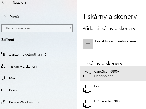 problém je že tiskárna v seznamu není, když se snažím "přidat tiskárnu" tak nic nenajde