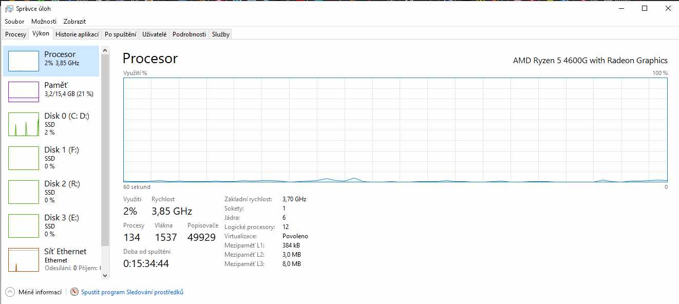 Dej sem screenshot ze správce úloh záložka "Výkon" položka "Procesor".
