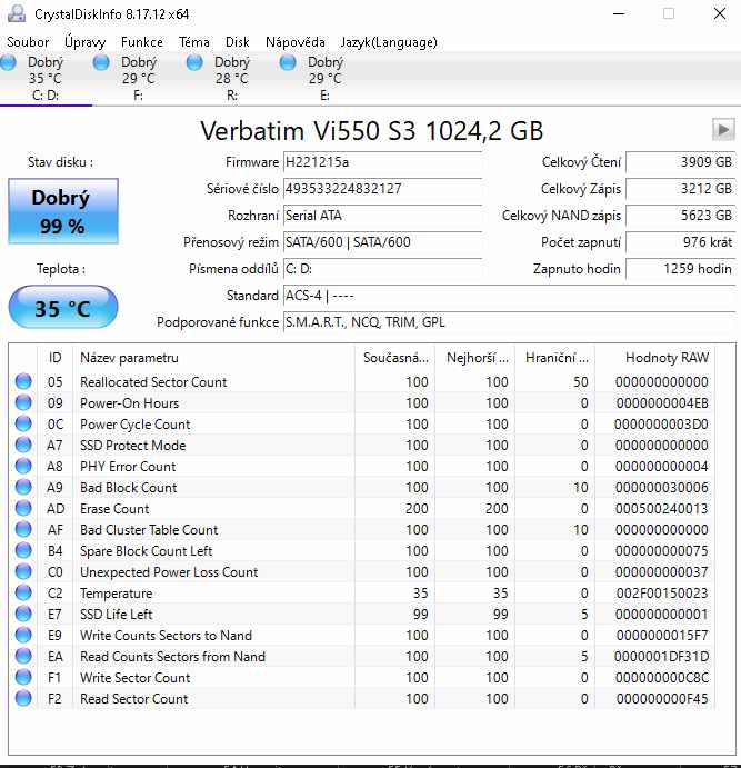 zkusil jsem disk: ale nerozumím tomu co ta tabulka říká, pouze informace DOBRÝ je pro mě pochopitelná
