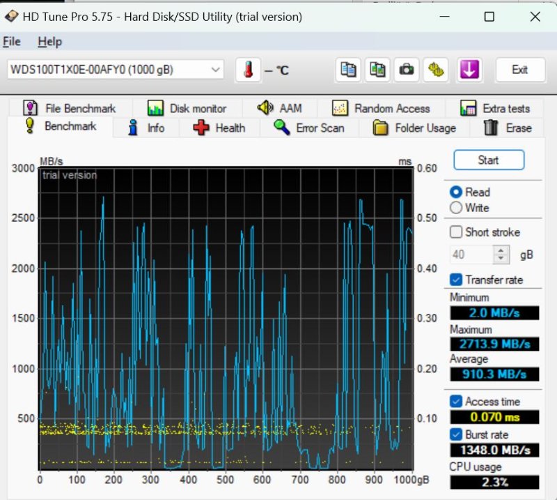 Zkusil bych i test rychlosti pres cely disk, nektera SSD umi po nejake dobe degradovat a rychlost zapisu v nekterych mistech klesne klidne na jednotky MB/s, treba jako tady jeden WD Black po 2 letech: