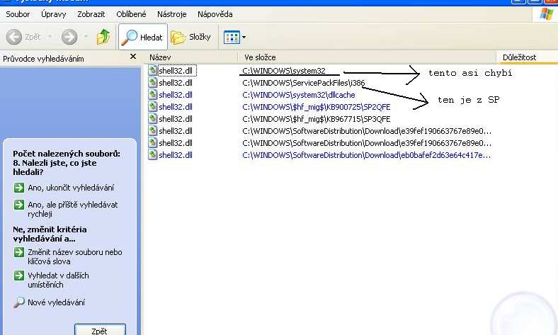 Já bych tě poradil si z jiného PC vzít shell32.dll a dát ho so svýho. Je umístěn C:\WINDOWS\system32 ale možná by vše řešila instalace SP3.