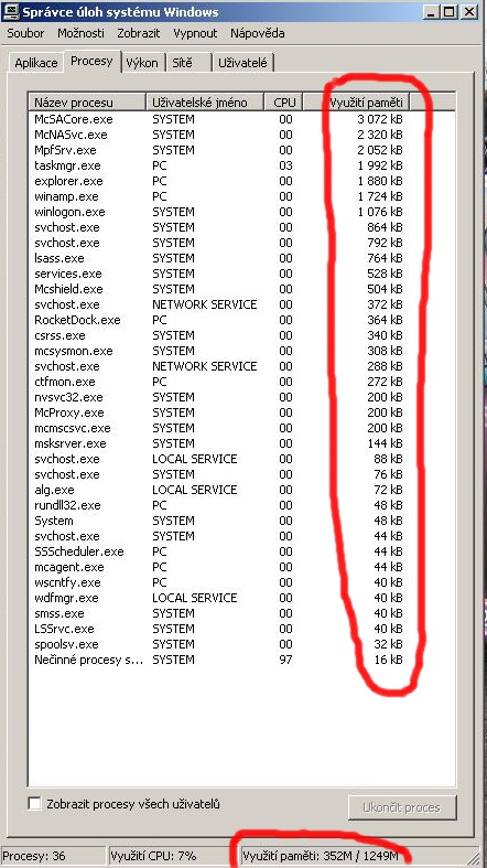 když otevřu Správce úloh a podívam se kolik je využíváné paměti RAM je to vždy 300-350MB, ale zaplé procesy nevyužívají snad ani 20MB. Co využívá těch skoro 300MB? :dontgetit:
