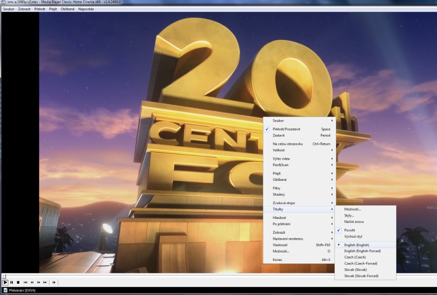 Změna zvukové stopy v Media Playeru Classic HC