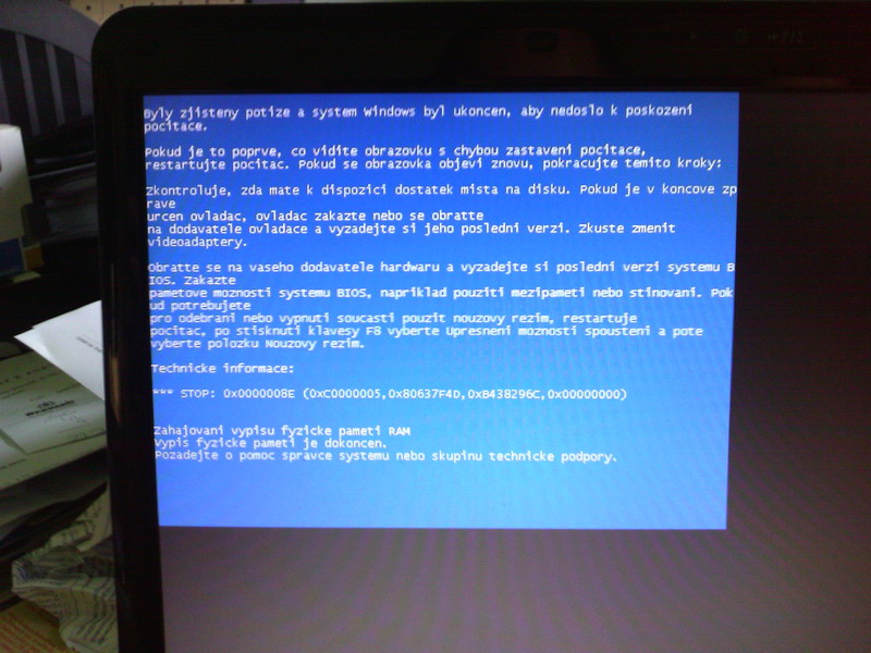 Znama ma problem s NB, najednou se nemuze prihlasit do WinXP Home SP3, po zadani prihlasovacich udaju se objevi BSOD viz obrazek. nouzovy rezim lze spustit normalne, ale bezny ne. Zkousim jiz nekolik hodin Memtest, ale zatim bez chyby, HDD proveren take bez chyby, netusi nekdo, v cem by mohl byt problem?