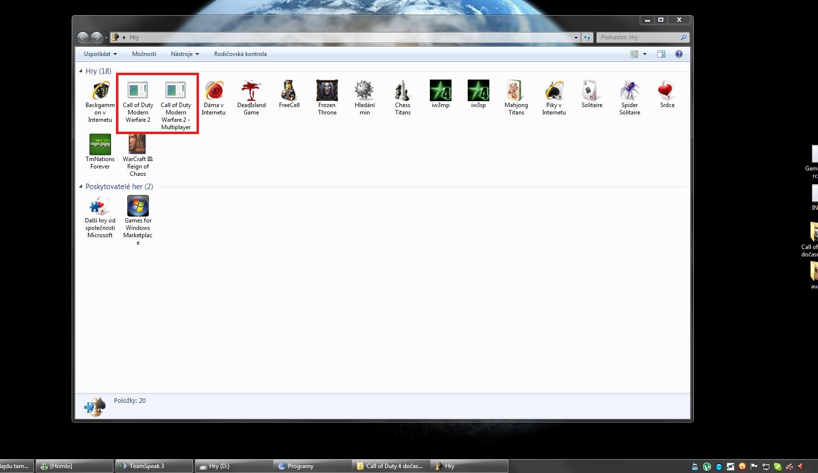 Odstranění ikon ze složky "Hry" ve Win7
