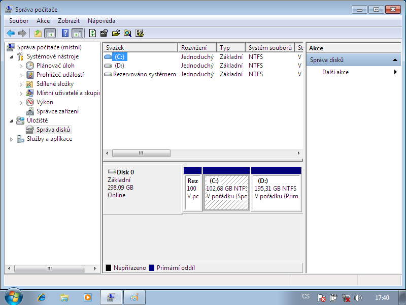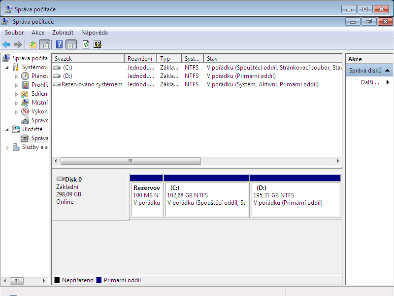 Pravou myší Tento počítač - Spravovat - Správa disků