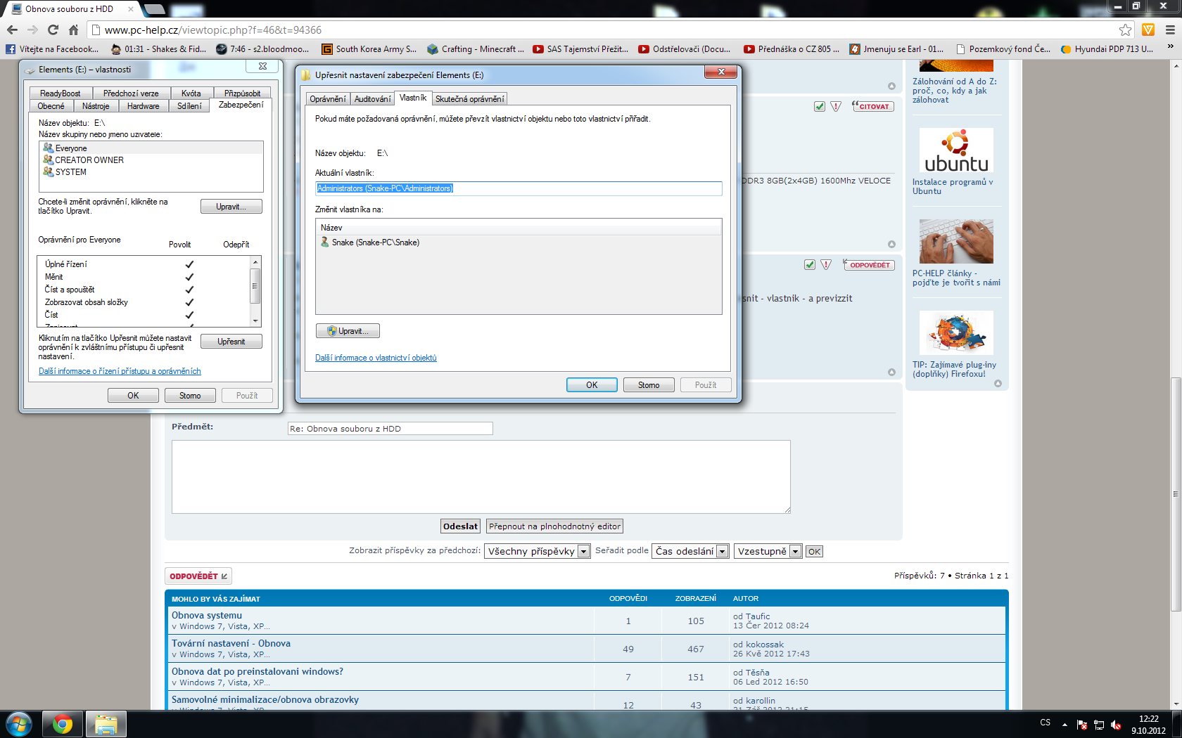 Moc se omlouvám bohužel nemohu najít (převzít vlastnictví všeho) Mám Windows 7 Ultimate zasílám vám přílohu jak to vypadá.