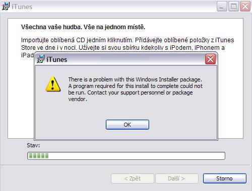 Ahoj,abych mohl stříhat videa v sony vegas 9,je potřeba quick time player ke kterému je potřeba nainstalovat Apple applicaion support,stáhl jsem si tedy instaler(mám win xp,32-bit..) a háže mi to tuhle tabulku během instalace I-tunes.Nevíte co s tím máám udělat?=)