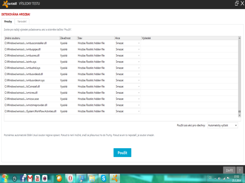Tak dej Pouzit a on je smazne. Dale by nebyl od veci Test pri spusteni PC.