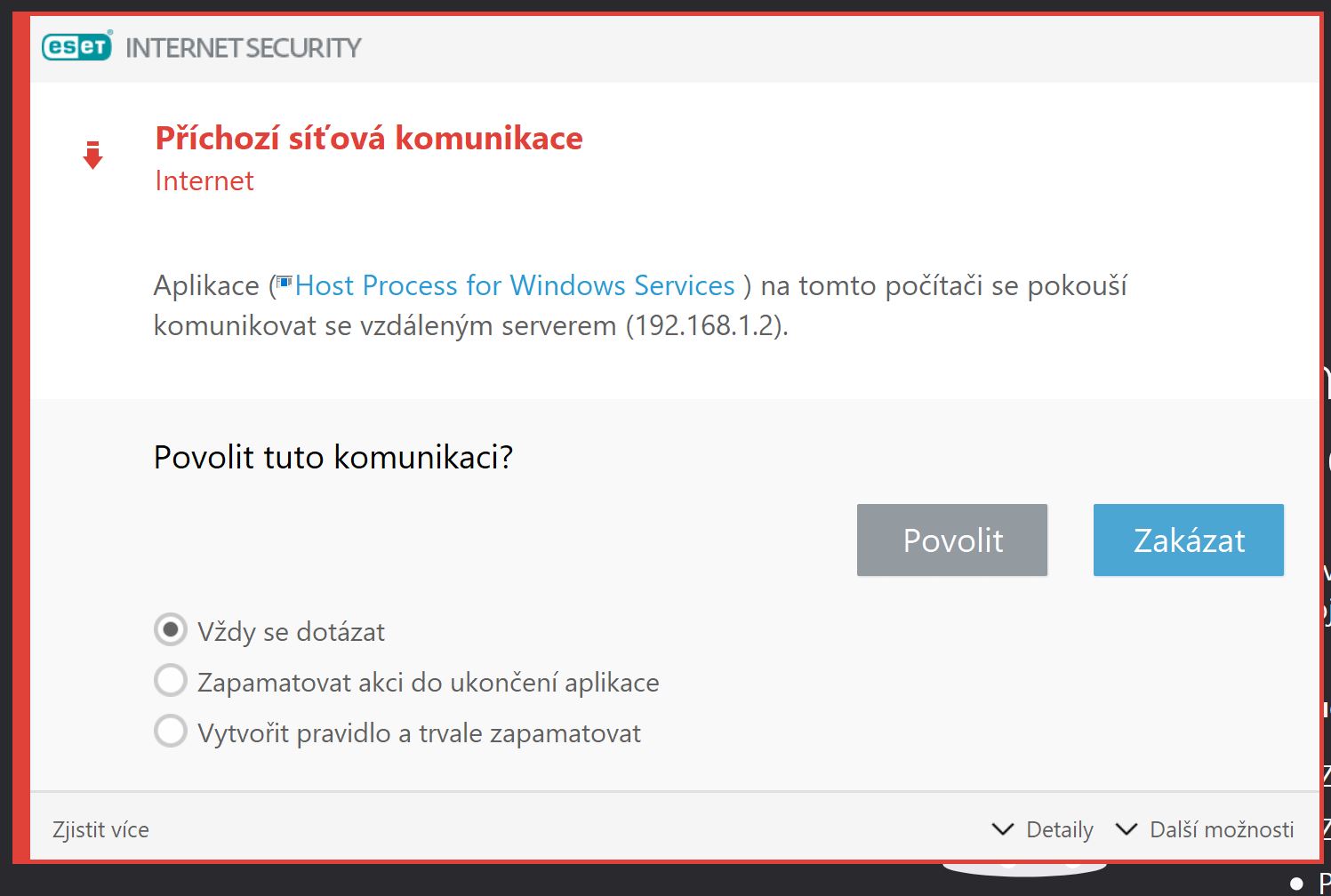 po pár (1-20) hodinách zapnutého počítače mi občas vyskočí hláška firewallu: