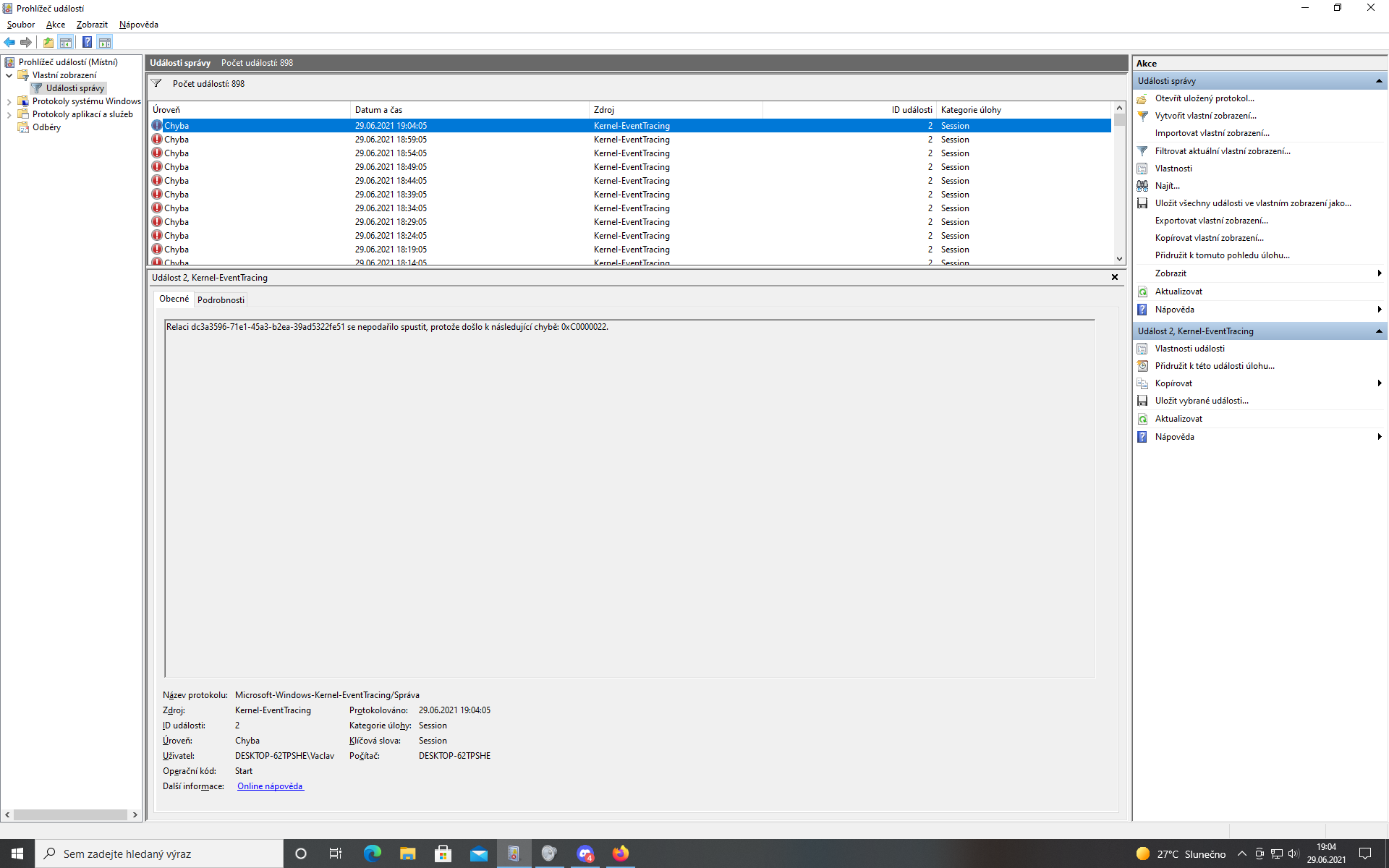 Ok, to jsem rád. Díky za kontrolu. Co mě ale trochu zneklidňuje, je velké množstí chyb s ID 2 v Prohlížeči událostí. Je to převážně když hraju hry. To samé jsem viděl i u bráchy, ale je mi to divné...