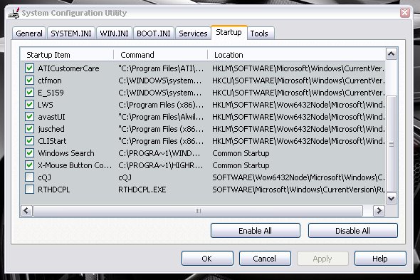 mám malý dotaz, zdali někdo neví co je "cQJ" v MSCONFIGu/startup.