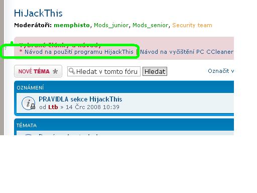 Návod na použití programu HijackThis || Návod na vyčištění počítače CCleanerem || FAQ: Antiviry