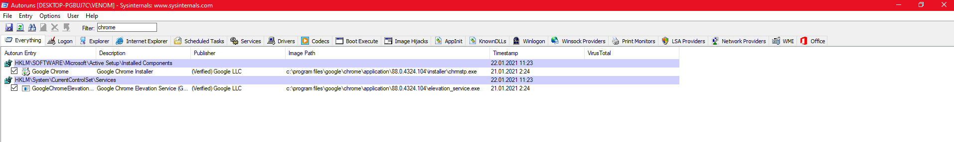 V AutoRuns nyní zkus smazat pouze tu položku elevation_service.exe