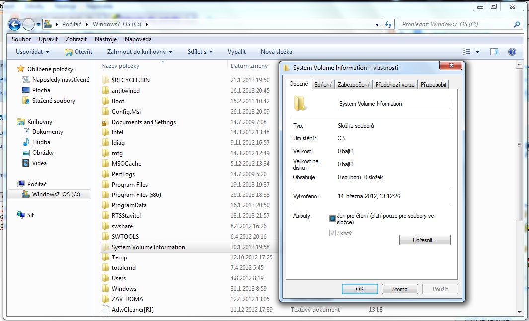 1. složka C:\System Volume Information - hláška "Přístup odepřen", vlastnosti viz screen 1