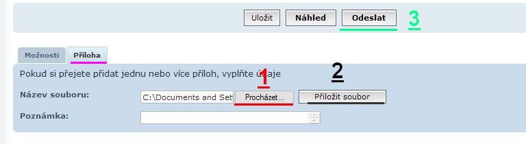 Výsledný soubor "File.zip" přilož sem pomocí tlačítek "Příloha", "Procházet" a "přiložit soubor", poté dej "Odeslat".