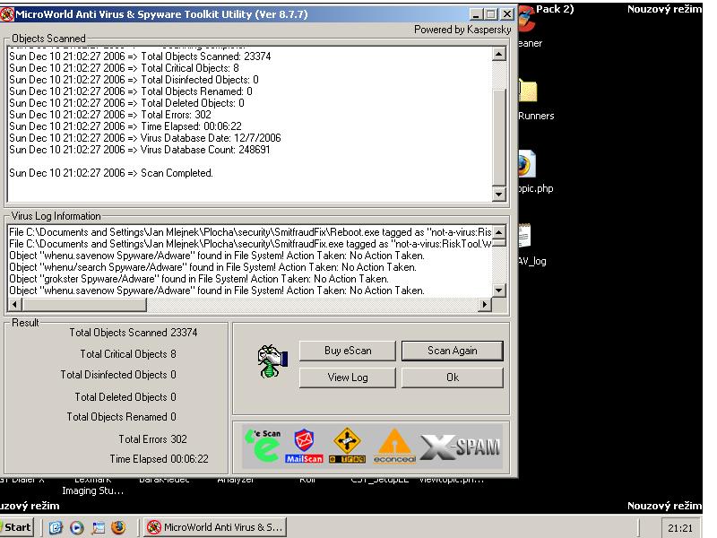 Sun Dec 10 20:56:56 2006 => Scanning File C:\Documents and Settings\Jan Mlejnek\Plocha\Kanada\10