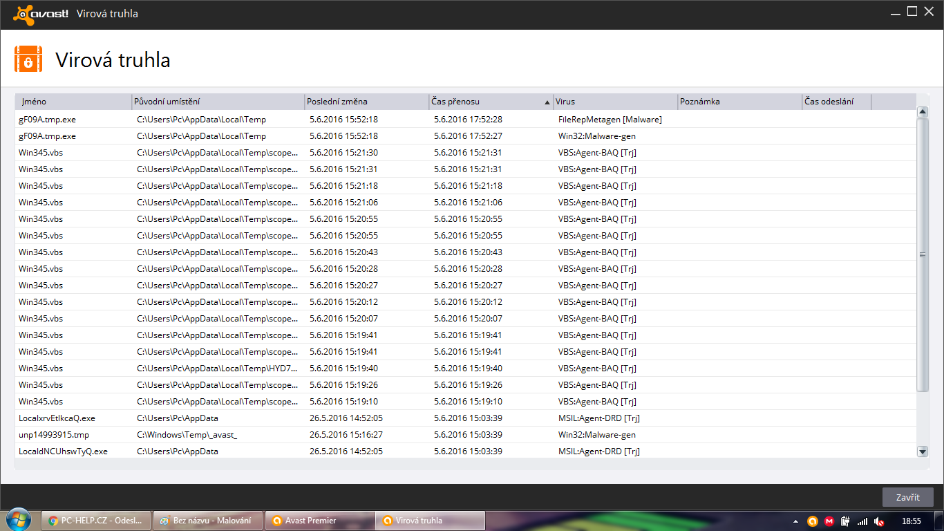 Na to jsem dávala úplný test systému. Tam mi to nalezlo 11 infikovaných souborů. Dávala jsem je do truhly a 4 z nich nešli. Vše bylo z místního disku C. Jen jedno jediné z D. Z D to bylo ale akorát dll. Kdežto to ostatní bylo to stejné výše zmíněné jen na jiných místech + pár malwarů aj. A něco bylo odchyceno dokonce i na avastu samotném.