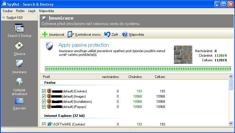 cau , nainstaloval sem si Spybot a aktualizace potom sem "omylem" klikl na Imunizace (takovy modro-bily stit) a kontolovalo mi to nake spiony a bezpescnosti prohlizece a mam : 112019 nechraneno