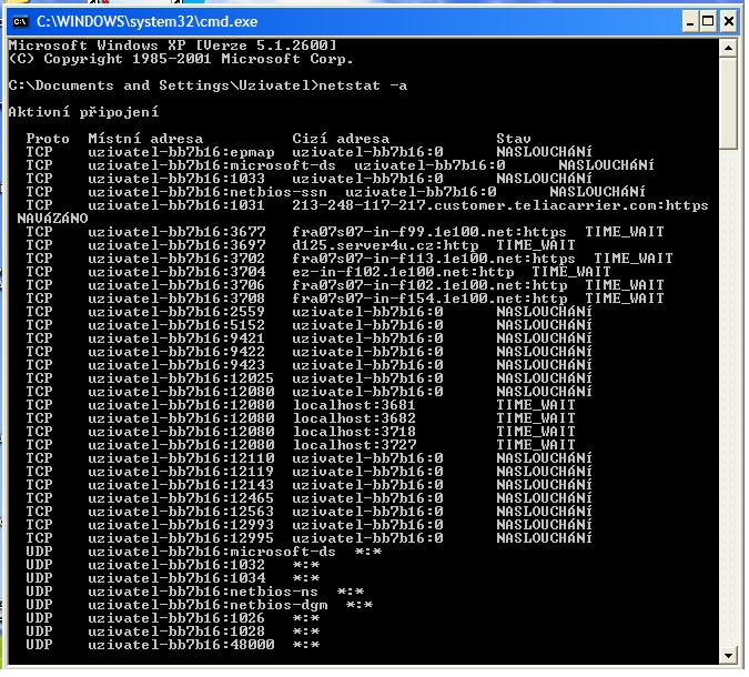 Jestli se ti občas někdo hrabe v PC to pomocí netstat -a nezjistíš.