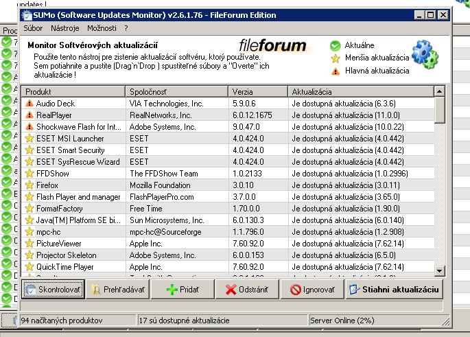 Jednoduchej program pro sledování nejnovějších verzí softwaru http://www.slunecnice.cz/sw/sumo/" onclick="window.open(this.href);return false; lze nastavit do slovenštiny...