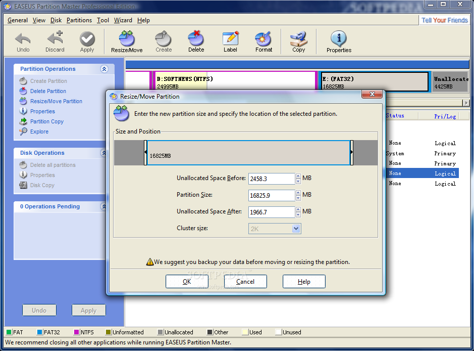 EASEUS Partition Manager je přehledný nástroj pro vytváření, editaci a správu diskových oddílů. Uživatel může samozřejmě měnit název i velikost již vytvořených oddílů. EASEUS Partition Manager spolupracuje se souborovými systémy NTSF i FAT 16/32.