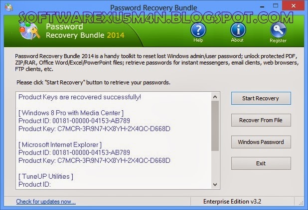 Password Recovery Bundle 2014 je šikovný nástroj který umí obnovit všechna vaše ztracená nebo zapomenutá hesla jednoduchým způsobem! Rychle obnovit nebo reset hesla pro Windows, PDF, ZIP, RAR, Office Word / Excel / PowerPoint dokumentů. Načíst hesla pro všechny populární instant messaging, e-mailové klienty, webové prohlížeče, FTP klientya mnoho dalších aplikací.