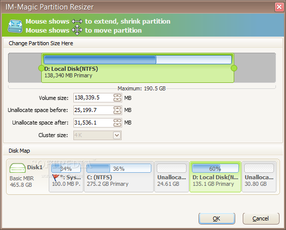 C drive running out of space? Try IM-Magic Partition Resizer Pro to resize partition spaces without reformatting disk, reinstalling OS, or even trouble yourself moving large data from one place to another.