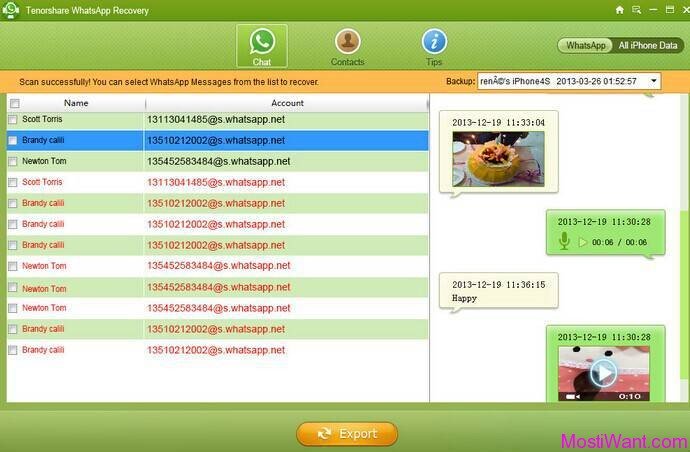 Accidentally wiped WhatsApp chat history and contacts on your iPhone? Lost WhatsApp messages after iOS upgrade? No matter how you lost WhatsApp chat history and contacts, Tenorshare WhatsApp Recovery can easily recover them. This program works excellently for all iOS device, including iPhone 6/6 Plus, iPhone 5S/5C/5, iPad Air 2, iPad Air, iPad mini 3/2, iPod touch 5G, etc.