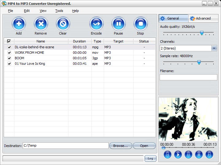 MP4 to MP3 Converter je nástroj, který umí rychle převést MP4 do MP3 audio formátu. MP4 to MP3 Converter také podporuje AVI, MPG, FLV, WMV, MOV a dalších video formátů MP3, WMA, WAV, OGG, FLAC audio formáty konverze. MP4 do MP3 konvertor podporuje i dávkový režim. Dnes hra: Winterball
