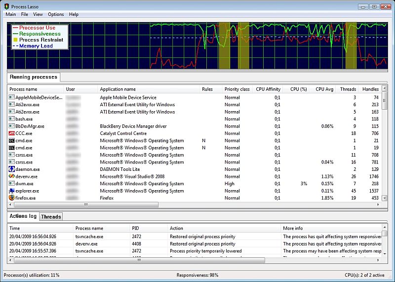 Optimalizace procesů, jeden z nejpopulárnějších rysů procesu Lasso je unikátní technologie zvaná ProBalance (proces Balance) která zrychlí a optimalizuje PC.
