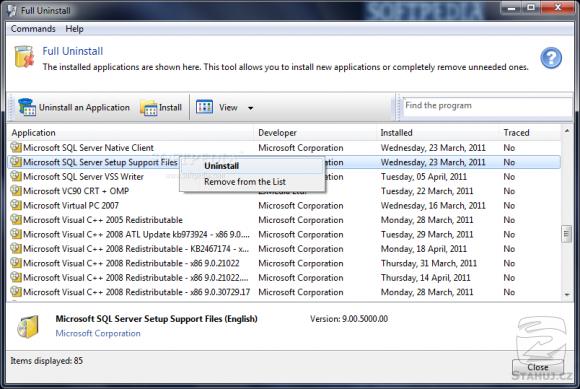 Častým problémem, se kterým se setkáváme při odinstalování softwaru, jsou různé stopy zanechané v systému: nepotřebné soubory a složky na disku, záznamy v registru a tak dále. Tato situace může nastat i v případě, že aplikace byla korektně odebrána vlastním odinstalačním programem. Full Uninstall je profesionální aplikace určená k odinstalaci nepotřebných aplikací z Vašeho systému.