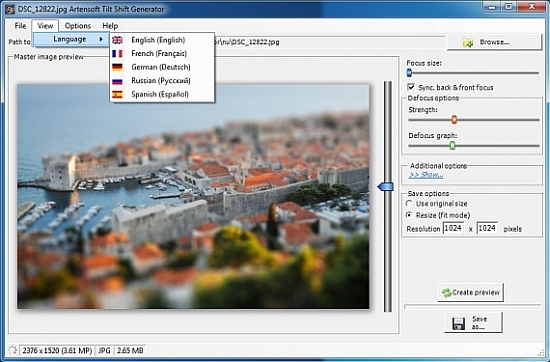 Artensoft Tilt Shift Generator