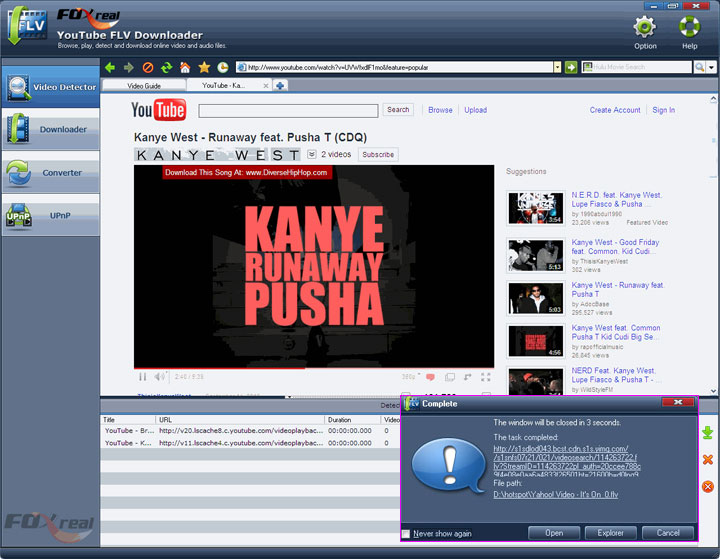 Foxreal YouTube FLV Downlaoder Pro je profesionální Web Video Downloader navrženy tak, aby snadno a rychle stáhnout / převést jakékoliv video Flash (FLV/F4V) z YouTube, Google, Yahoo, Facebook, FOX, CBS a další video-sdílení webových stránek na MP4, 3GP, MPG, DVD, MOV, atd. S ním můžete přímo uložit on-line video na IPAD, iPhone 4, Droid X, Galaxy S, PSP, PS3, Apple TV a další média přehrávač pro přehrávání s vysokou kvalitou. Kromě toho také podporuje UPnP připojení, které vám pomohou sdílet video / hudba na UPnP podporovaných zařízeních s lehkostí.
