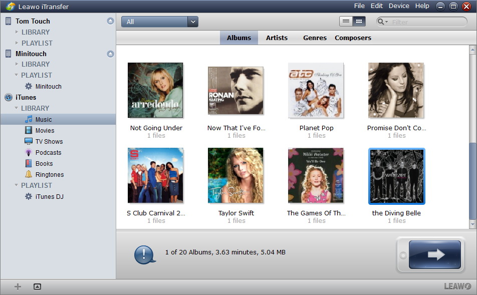 Leawo iTransfer je užitečné pro iPhone, iPad a iPod pro přenos souborů, který se používá pro přenos souborů mezi zařízení se systémem iOS, iTunes a PC. Leawo iTransfer pomáhá přenášet různé druhy souborů s lehkostí, včetně aplikace, hudbu, filmy, televizní pořady, vyzvánění, knihy, fotografie a soubory Camera Roll.
