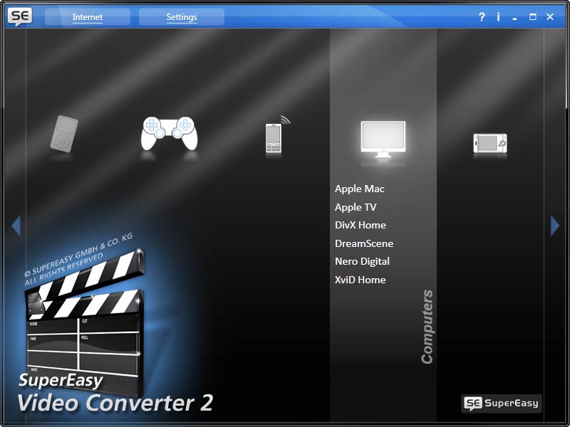 SuperEasy Video Converter je aplikace pro konverzi obsahu DVD a multimediálních video souborů (DivX, XviD, WMV, MPEG,...) do oblíbených mobilních video souborů pro konzole Sony PSP, iPod, iPhone, Xbox a další zařízení. SuperEasy Video Converter umožňuje i videa snadno stahovat z oblíbených serverů YouTube, MySpace, Metacafe, Sevenload a dalších a následně je konvertovat do některého z podporovaných video formátů.