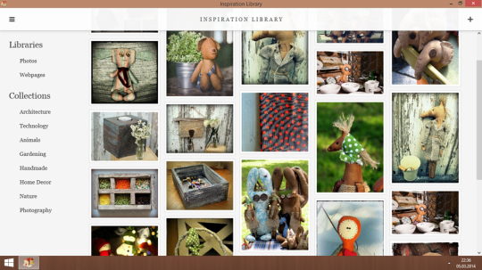 Sběr a organizování myšlenek pomocí fotografií a vzorů, která vám umožní ukládat soubory a roztřídit je podle sbírek a knihoven.