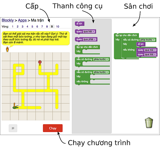 Rozdíl je v tom, že ten jejich program má plochu jen 8x8, a ovlává se myší, místo abys příkazy psal, tak si je nataháš a sestavíš z těch "lístků" co máš v prostředním okně. Jinak je tam totéž jako v Karlovi, KROK, VLEVO-VBOK, KDYŽ, DOKUD, OPAKUJ...