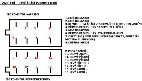 Červený a žlutý jsou (+), jeden z nich je zapojený přímo na akumulátor (vodič 30) a druhý přes klíček (vodič 15). Ten co jde na akumulátor slouží k napájení paměti předladěných stanic, druhý vypíná rádio při vypnutí klíčku. Některá rádia jdou zapnout i bez něj, jiná ne, záleží na výrobci a modelu. Vyzkoušej co to dělá zrovna u tebe, a pokud zapojíš oba, nic se nestane, pochopitelně vždy přes pojistku!