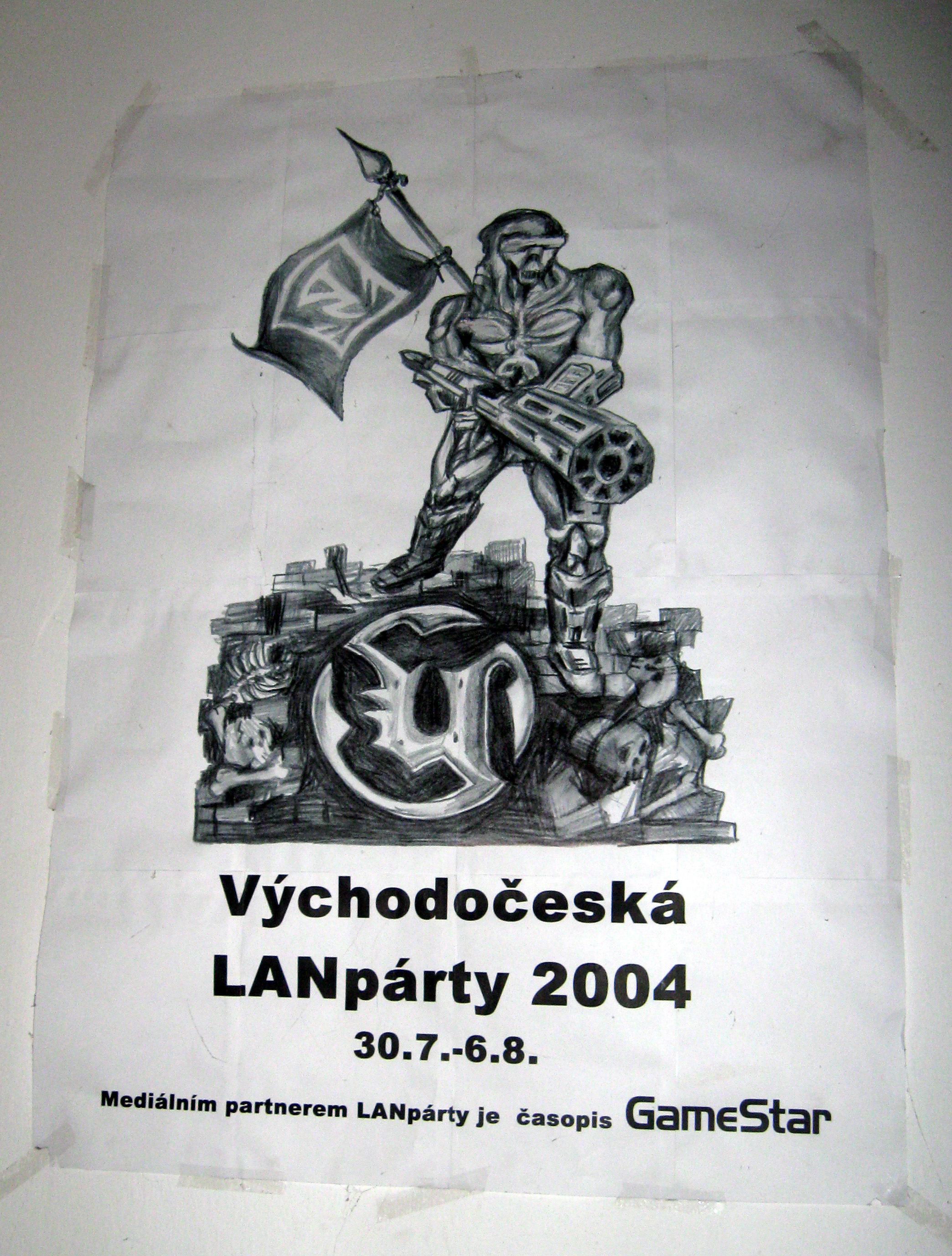 "Prototyp" plakátu, co můj nevlastní bratr nakreslil a já doplnil textem a plakátově vytisknul z 16ks A4. Na vlastní akci, co jsem pořádal jsem plakáty už nelepi, ale vytisknul na příslušný formát.