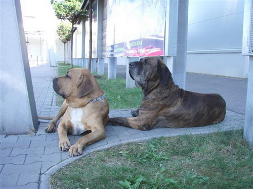 Mírumilovní? Co se týká rodiny, tak máš jistě pravdu. Jinak jsou to obranáři jak se patří, brazilská fila nenechá cizího přiblížit blíž jak 2m a už varuje. A pohladit? O tom si cizí jen mohou nechat zdát. Nejsou to psi na mazlení a hlazení (pro cizí), chrání rodinu i majetek. Respektují přátele a známé, ale jsou neustále ve střehu a při sebemenší známce nějakého nebezpečí, nekompromisně zakročí. Nikdy neútočí Bez důvodu, vždy je dokážu odvolat, za těch víc jak 15 let, co jsou členy naší rodiny, nikdy nenapadli člověka. Ale zvlášť brazilskou filu bych každému nedala, vyžadují přítomnost svého pána, kterého nadevše milují, vyžadují správnou výchovu a důslednost, věnuji se jim každý den od rána do večera, všude chodí nebo jezdí se mnou, opravdu to není pes pro každého