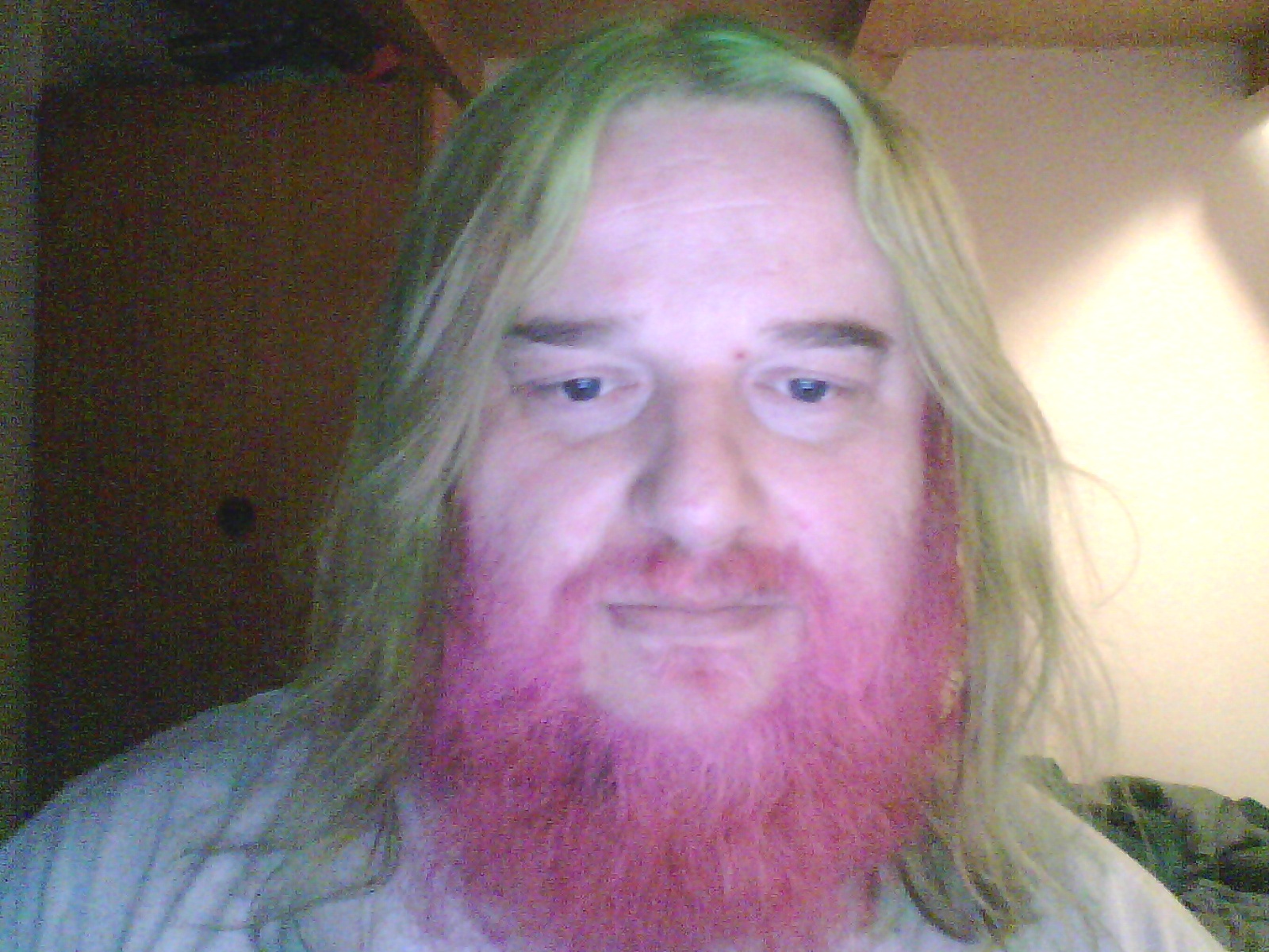 Vlasy mi zatím ještě nešedivěly. Ve fousech se ovšem bílé objevovaly, ale proto jsem to nedělal. Nedávno jsem viděl z tramvaje vystupovat ženskou s červenými nebo oranžovými (už si přesně nepamatuji) vlasy. Pravda, že to ještě není tak moc ujetá barva, nadto u ženské, ale když jsem ji viděl, vykulil jsem oči a se zatajeným dechem konstatoval: „Tak tohle chci!“ a když se mi to za pár dní nerozleželo, objednal jsem barvy a kamarádčina dcera, která barví své kamarádky, to na mně spáchala (zkoušel jsem nejprv kadeřnictví, ale buď neměli vhodné barvy, nebo nedělali vousy).
