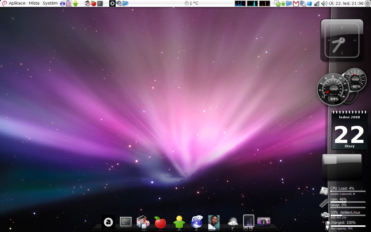 To napravo jsou Screenlets a to dole Avant Window Navigator