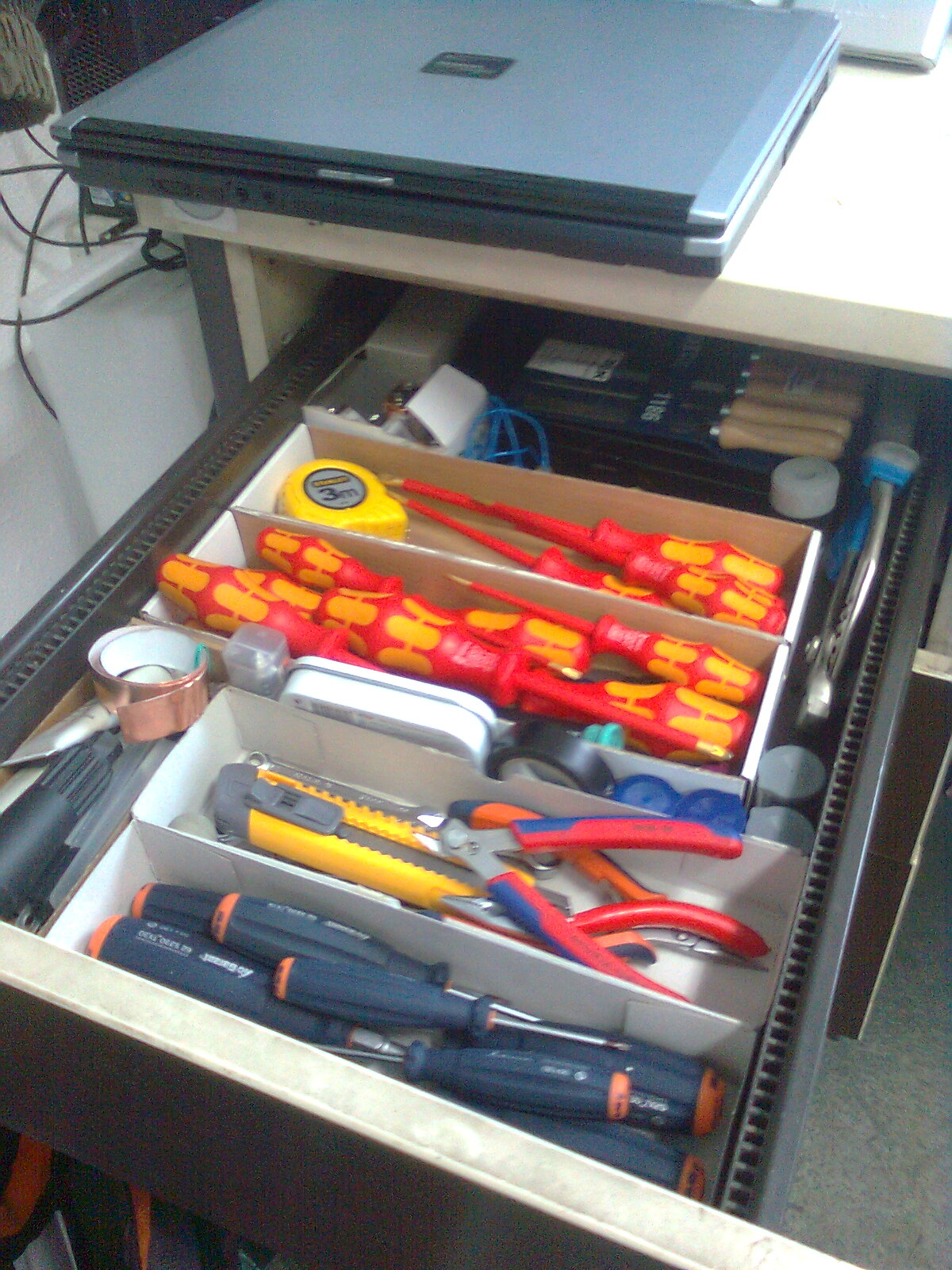 Které šroubováky? Jsou tam sady plochých a křížových a pak je tam sada TORX. Úplně nejradši pracuji s kleštěmi, které nejsou na fotce moc vidět. To je pohádka s něčím takovým pracovat. Jemné, přesné, nezničitelné,... Přirovnal bych to k tomu, když jsem byl mladý, objevoval svět děvčat a poprvé TO měl v ruce... :-D