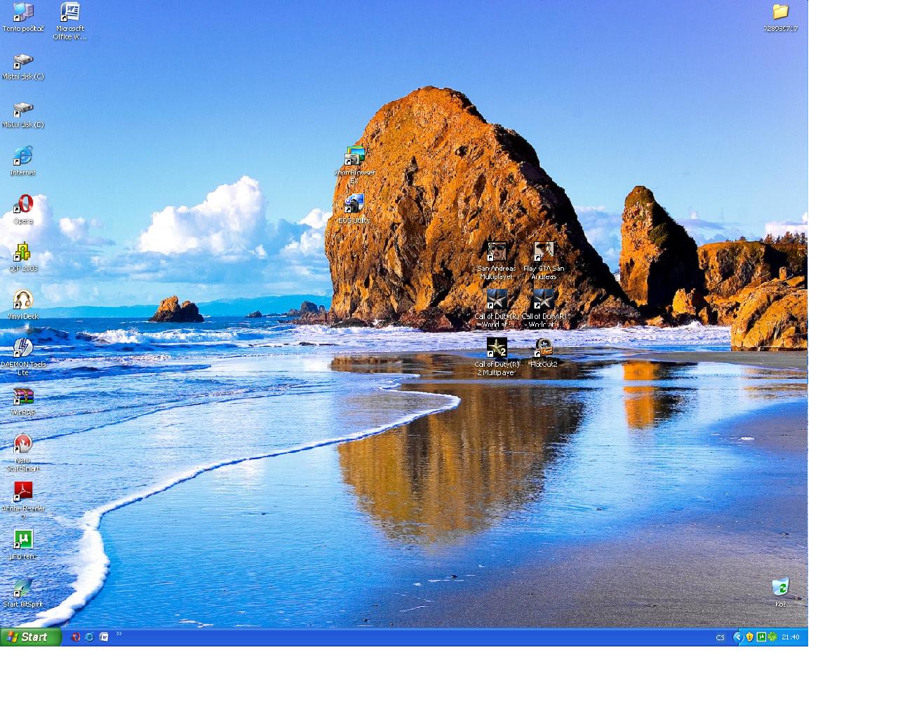 Moje plocha, nemohu si vybrat žádný obrázek tak používam výchozí tapetu a lišta RocketDock parádní prográmek doporučuju !!!
