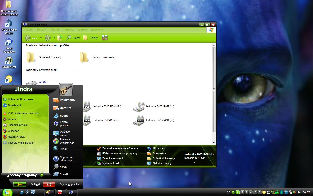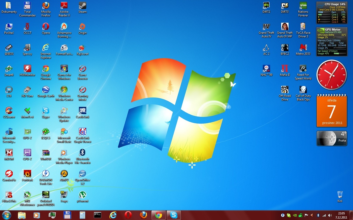 Ani ne, já na ploše stejně moc času netrávim, spíš mám furt maximalizovanej Total Commander takže moje "plocha" vypadá furt takhle: